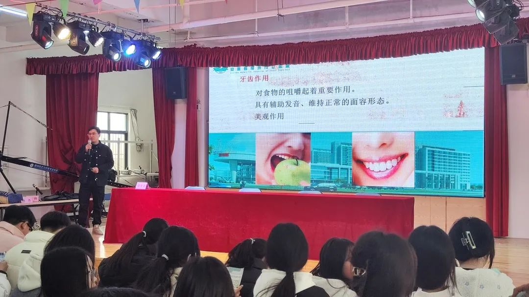 宿州市立醫(yī)院口腔科主治醫(yī)生—羋大衛(wèi)從牙齒清洗、齲齒填充、智齒拔除、缺牙修復(fù)、牙齒種植與矯正、牙齒美白等方面講解了有關(guān)口腔健康知識(shí),重點(diǎn)講授了日常牙齒保健的重要性,并結(jié)合多年的臨床工作經(jīng)驗(yàn),對(duì)部分學(xué)生對(duì)待牙病的誤解進(jìn)行了糾正。羋醫(yī)生的講解深入淺出、貼近實(shí)際、指導(dǎo)性強(qiáng),現(xiàn)場互動(dòng)熱烈。