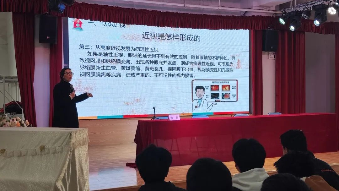 宿州市疾病預(yù)防控制中心—黃帥醫(yī)生主要從關(guān)于近視的發(fā)展現(xiàn)狀、用眼的科學(xué)知識(shí)、視力檢查的注意事項(xiàng)、近視防控的有效手段、護(hù)眼的正確選擇、治療近視的種種誤區(qū)、近視的其他問題等方面進(jìn)行了詳細(xì)解讀,讓同學(xué)們了解近視的危害和近視防控的相關(guān)知識(shí)。
