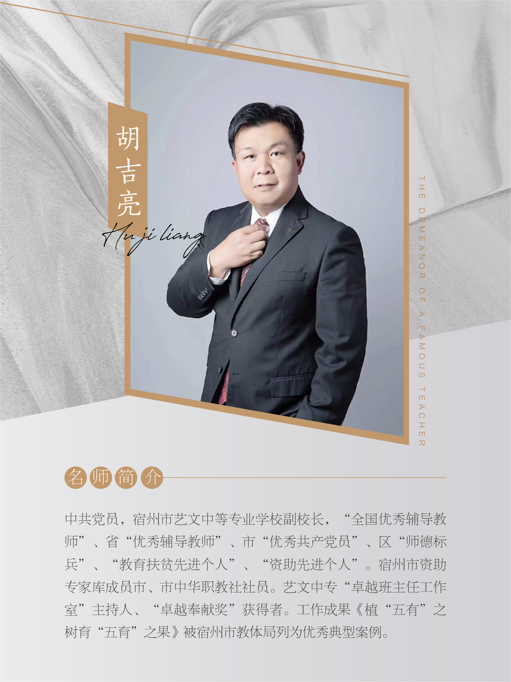 胡吉亮,男,現(xiàn)年43歲,宿州市“優(yōu)秀共產(chǎn)黨員”宿州市藝文中專學(xué)校副校長、食品安全總監(jiān),班主任。20年的教育生涯,他以卓越的業(yè)績和無私的奉獻(xiàn)精神,樹立了一個優(yōu)秀教師的標(biāo)桿。