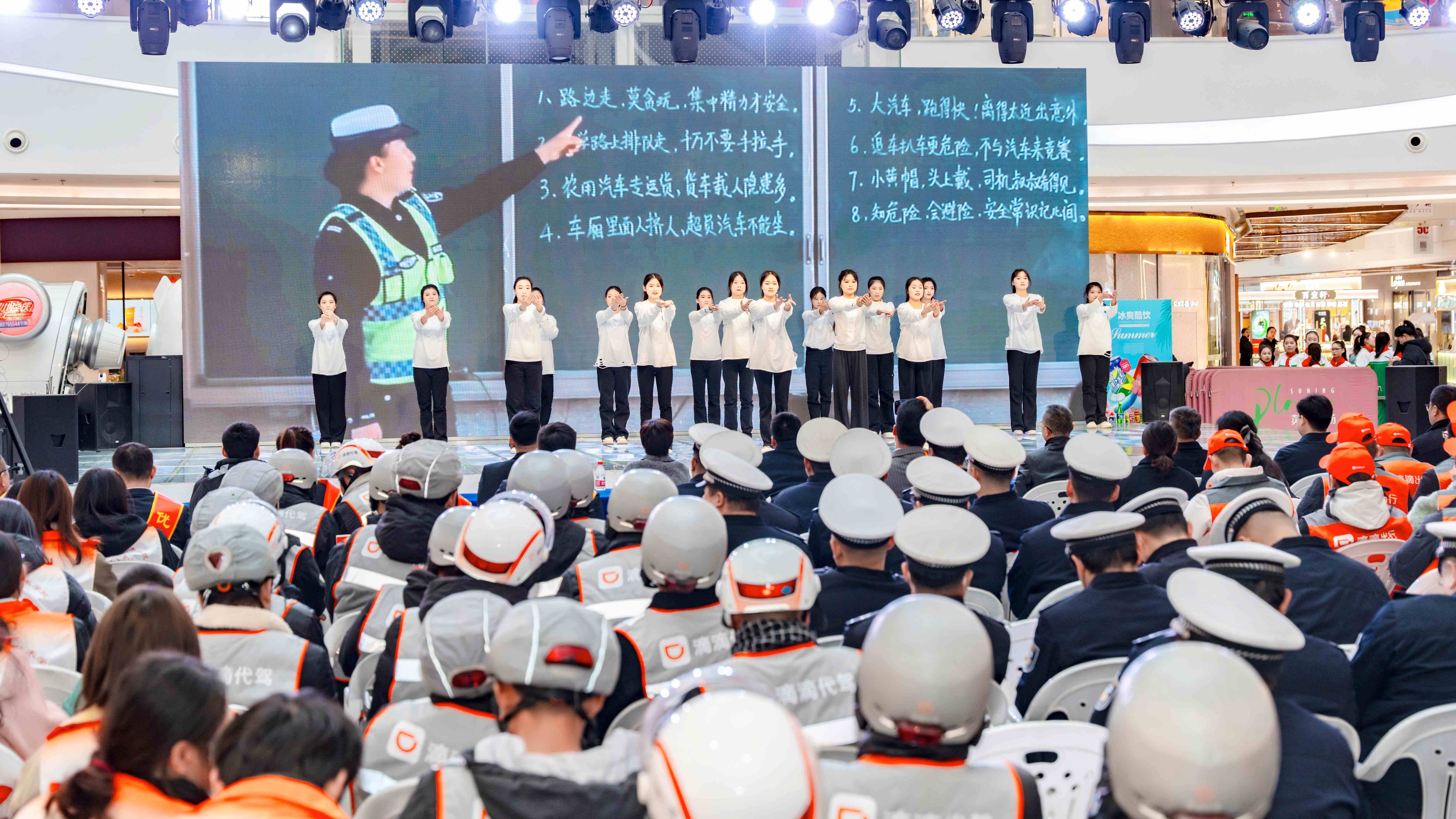 活動(dòng)中,藝文學(xué)校師生全力以赴,不僅擔(dān)綱了開場舞曲《交通安全四季歌》,更是《禮讓宿城》及《追夢》的主力軍。整場活動(dòng)高潮不斷,充分體現(xiàn)了市交警支隊(duì)的良苦用心與精心策劃,展示了藝文學(xué)子深厚的功底與橫溢的才華。交通安全知識貫穿其中,寓教于樂,觀眾們感動(dòng)了,孩子們流淚了。