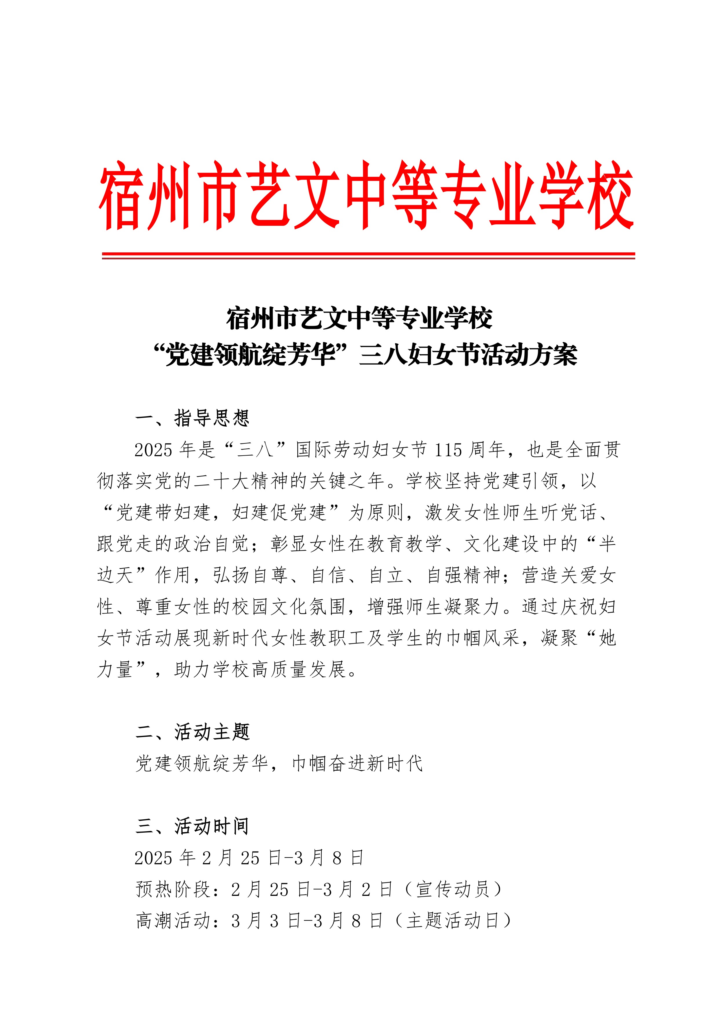 宿州市藝文中等專業(yè)學校“ 黨建領(lǐng)航綻芳華”三八婦女節(jié)活動方案