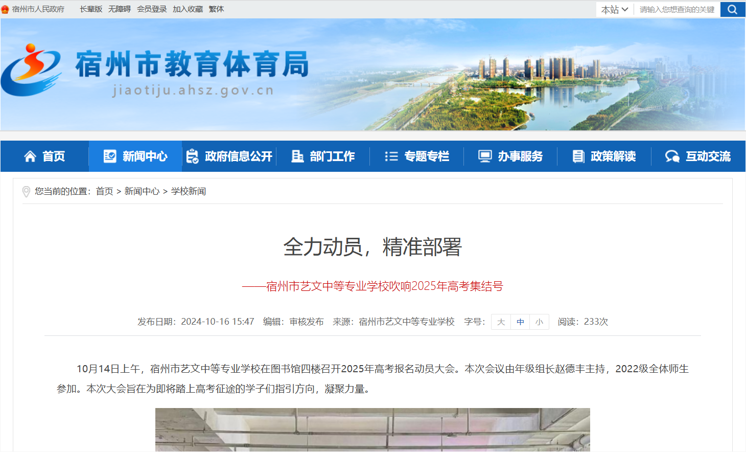 【市教體局】全力動員,精準部署 ——宿州市藝文中等專業(yè)學校吹響2025年高考集結號