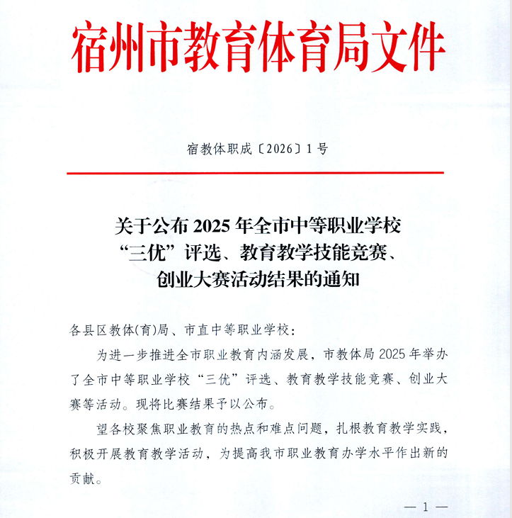 - 上一篇 : 宿州市藝文中等專業(yè)學校2025年質量報告