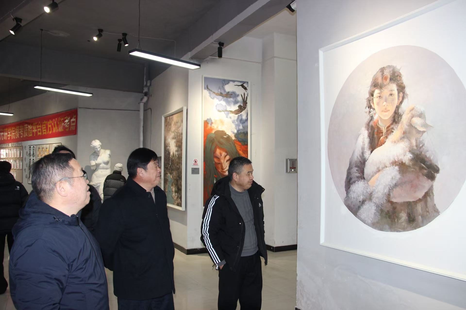 隨后,專家一行來到美術(shù)部展廳,參觀我校教師的藝術(shù)作品。從寫實(shí)主義的油畫到抽象表達(dá)的當(dāng)代藝術(shù),從傳統(tǒng)水墨到跨界融合的新媒體藝術(shù),豐富多樣的創(chuàng)作形式展現(xiàn)了我校教師深厚的藝術(shù)功底與創(chuàng)新精神。趙世鋒教授饒有興致地點(diǎn)評作品,從藝術(shù)語言的運(yùn)用到文化內(nèi)涵的表達(dá),提出諸多專業(yè)見解;安娜博士則從俄羅斯藝術(shù)視角出發(fā),分享不同文化背景下對藝術(shù)作品的解讀,讓在場師生深受啟發(fā)。參觀過程中,兩位專家還與學(xué)生們親切交流,詢問創(chuàng)作思路,鼓勵(lì)他們大膽探索,在藝術(shù)道路上保持熱愛與執(zhí)著。