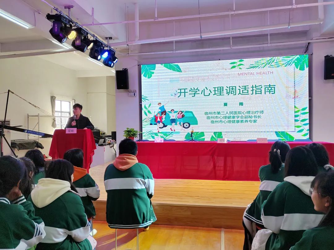 上好春季學(xué)期“健康第一課”,切實(shí)保障師生身心健康,是市教體局統(tǒng)一部署的重要任務(wù),我校春季學(xué)期“健康第一課”于2月24日在圖書館四樓開課。宿州市市立醫(yī)院近視眼防控宣傳專家劉霞霞、口腔醫(yī)生宣傳專家胡娟和宿州市第二人民醫(yī)院心理教育宣傳專家夏雨主講。三個(gè)年級(jí)全體師生及教務(wù)科、學(xué)生科全體成員和實(shí)習(xí)教師參加聽課。