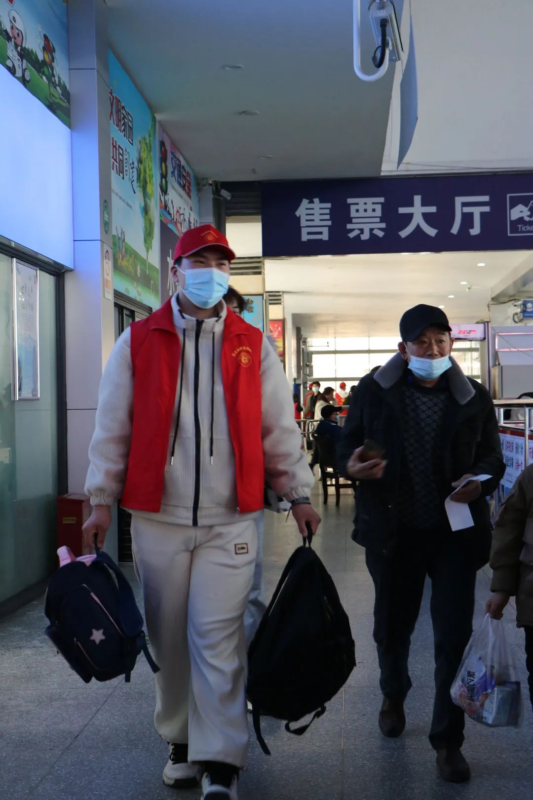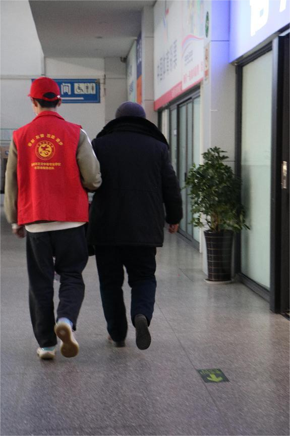 在老師和快客站工作人員的組織下,志愿者們有序的為需要的旅客指路、幫助旅客搬行李、協(xié)助工作人員打掃車站周邊的衛(wèi)生。