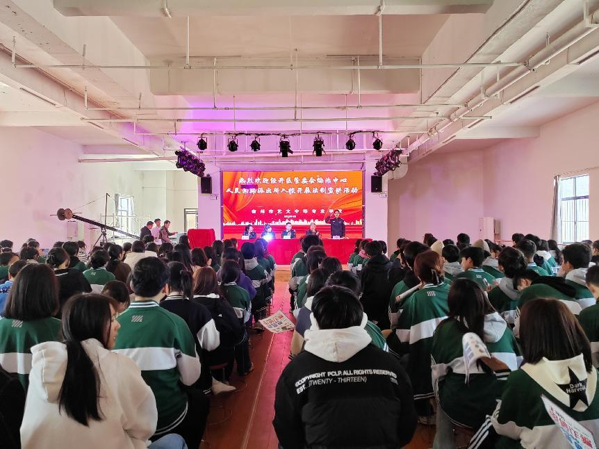 為落實(shí)宿州市預(yù)防青少年違法犯罪百日攻堅(jiān)行動(dòng)部署,進(jìn)一步加強(qiáng)學(xué)生的法治觀念和法律意識(shí),筑牢思想安全防線,藝文學(xué)校于4月7日在圖書館四樓演播大廳舉辦了法治副校長(zhǎng)進(jìn)校園活動(dòng)。此次法治宣講活動(dòng)邀請(qǐng)了藝文學(xué)校法治副校長(zhǎng)--人民南路派出所李強(qiáng)妹副所長(zhǎng)、宿州市經(jīng)濟(jì)開發(fā)區(qū)管委會(huì)綜治中心馬可主任主講。200余名師生代表到現(xiàn)場(chǎng)聆聽講座。