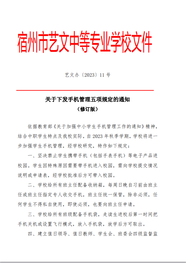 關于下發(fā)手機管理五項規(guī)定的通知