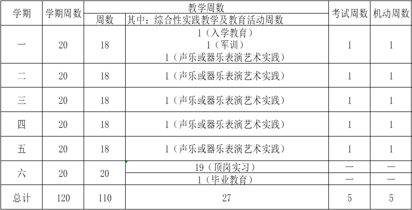 五、音樂表演專業(yè)教學計劃安排