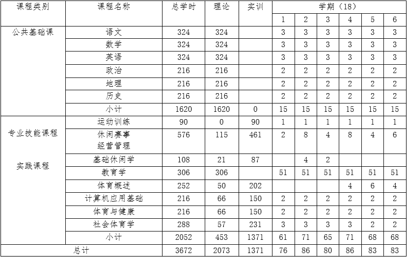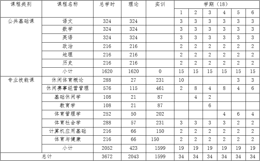 四、休閑體育服務(wù)與管理專業(yè)教學時間安排