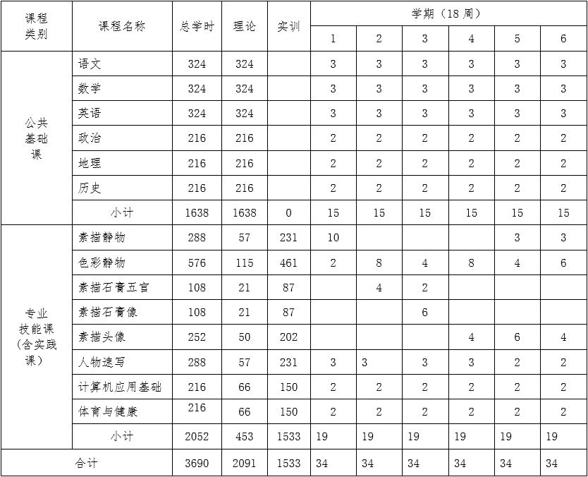 一、繪畫專業(yè)教學計劃安排(主干專業(yè))