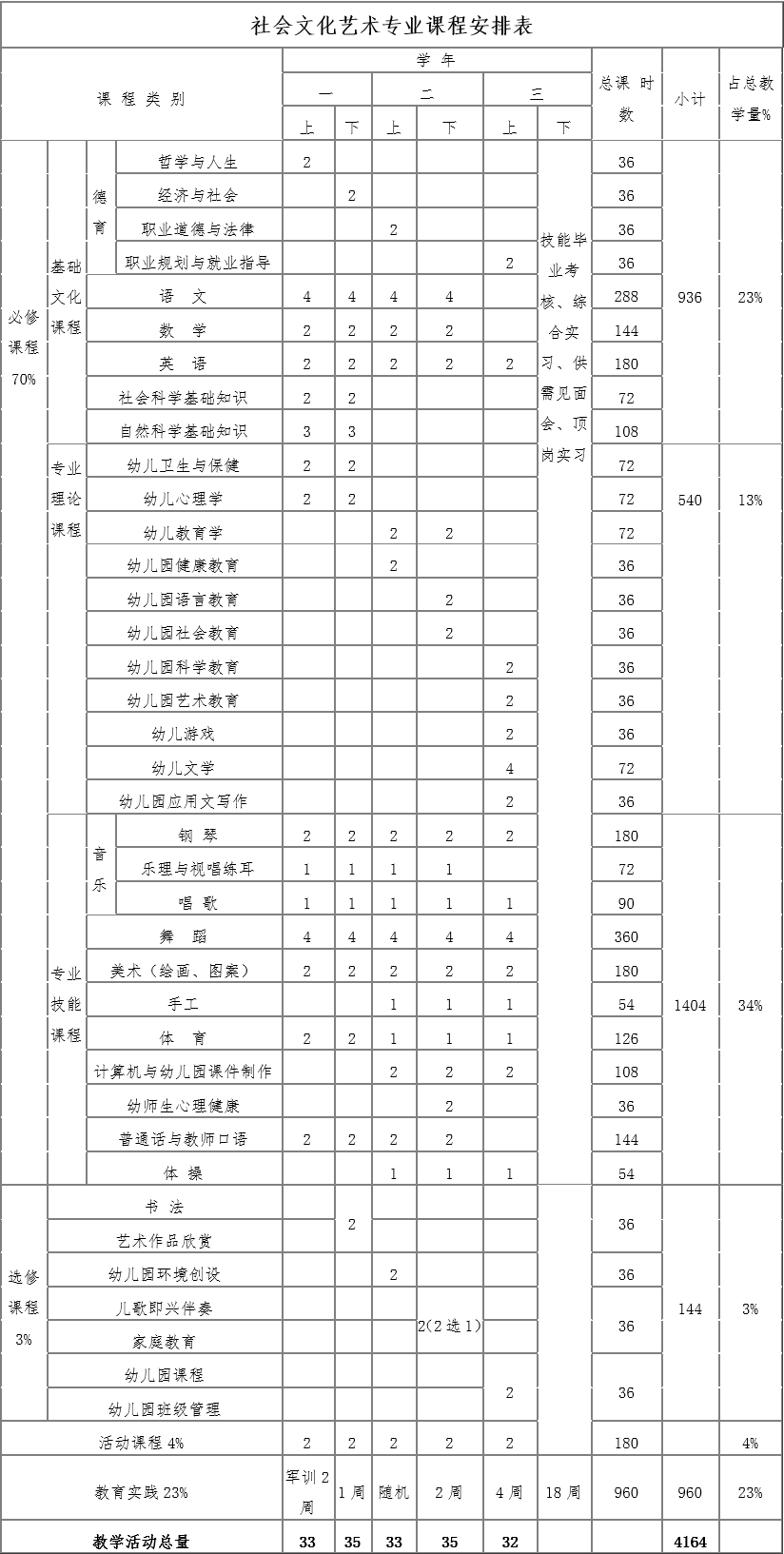 七、社會文化藝術(shù)(幼兒保育方向)專業(yè)教學計劃安排