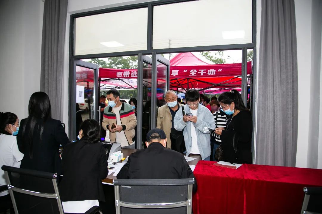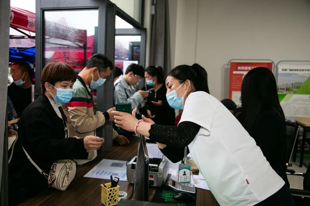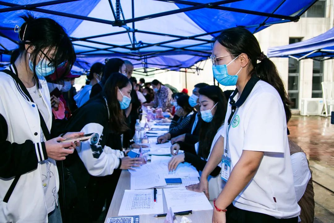 學(xué)生們?cè)诖箝T(mén)右側(cè)招生辦進(jìn)行繳費(fèi)