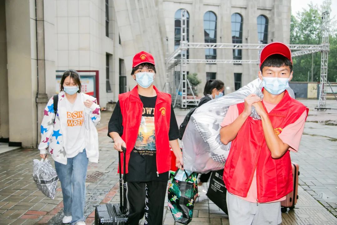 在整個(gè)報(bào)到的過(guò)程中,你一定能看到遍布在校園、穿著紅馬甲的學(xué)生志愿者們,他們將會(huì)帶領(lǐng)你們找到宿舍。
