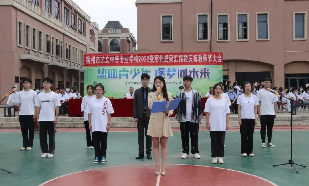 為慶祝22級(jí)新生軍訓(xùn)圓滿結(jié)束和即將到來的教師節(jié),9月8日上午9點(diǎn),宿州藝文學(xué)校在操場(chǎng)舉辦了“2022秋季開學(xué)新生軍訓(xùn)閉營(yíng)儀式暨教師節(jié)慶祝活動(dòng)”,活動(dòng)由播音主持專業(yè)的張子林 劉茜兩位同學(xué)主持,全校師生共同參與。