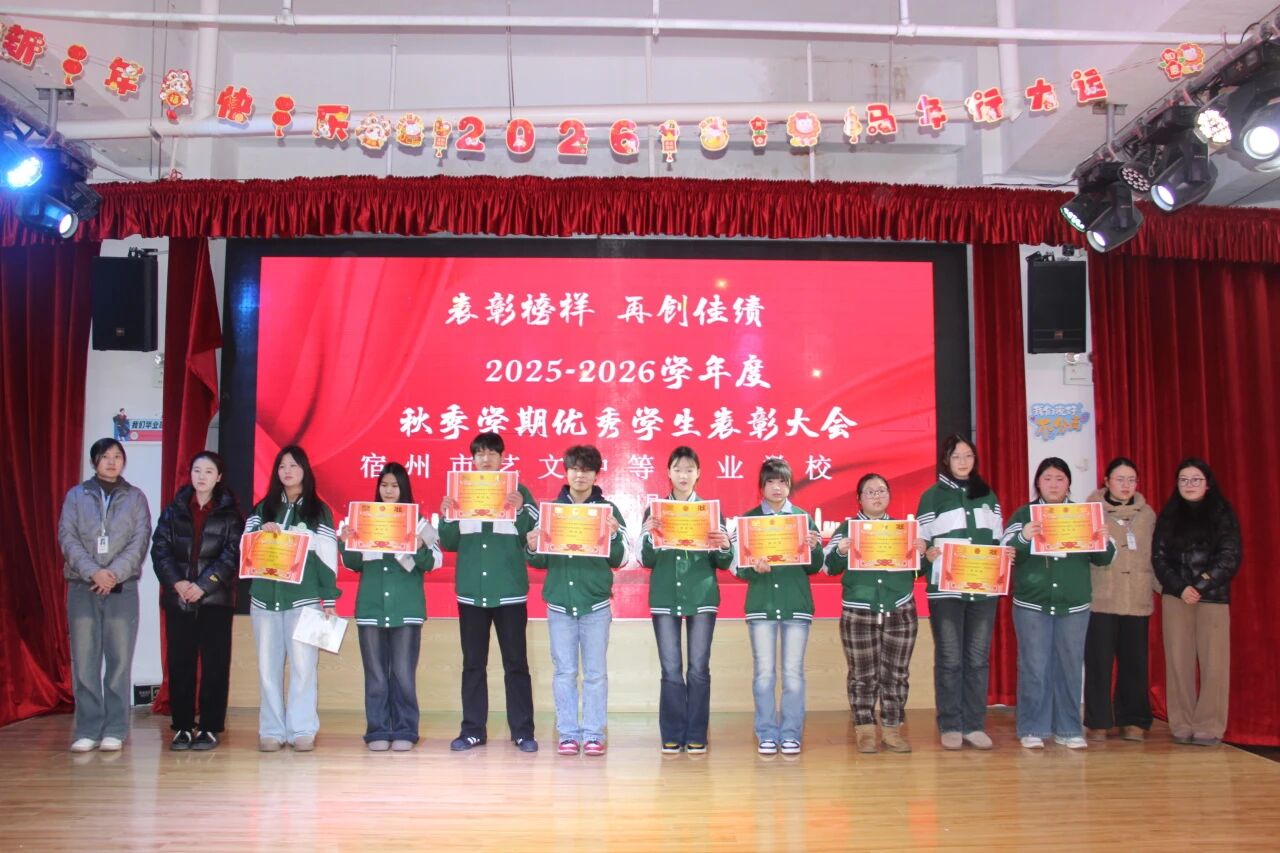 歲末回望碩果累,表彰先進(jìn)勵(lì)前行。為表彰先進(jìn)、樹(shù)立標(biāo)桿,營(yíng)造積極向上的校園氛圍,1月27日下午,宿州市藝文中等專業(yè)學(xué)校舉行2025-2026學(xué)年第一學(xué)期期末表彰大會(huì),校領(lǐng)導(dǎo)、教師代表及全體學(xué)生齊聚現(xiàn)場(chǎng),共同見(jiàn)證榮耀時(shí)刻,凝聚奮進(jìn)力量。